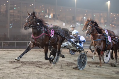 Med 1500 meter till mål styrde Joakim Lövgren på med Lady Beluga och de landade utvändigt om ledaren. Kilometern gick efter 1.16,7. Farten höjdes på den sista bortre långsidan och Notre Perle kom in på upploppet en halv längd före Lady Beluga.