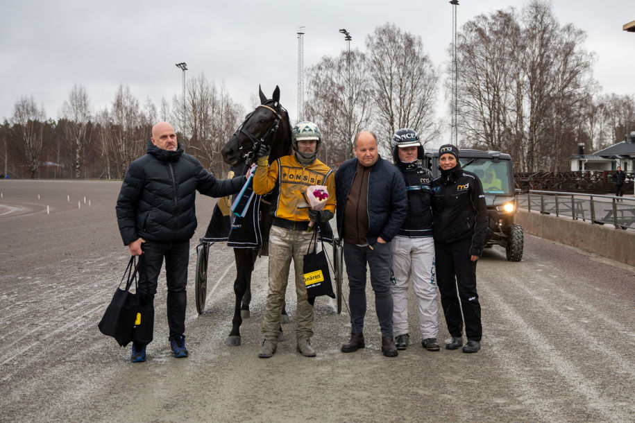 Magnus A Djuse tryckte på gasen från tredje utvändigt på sista bortre långsidan, och på bara några steg var den sexårige valacken tränad av storebror Mattias Djuse i ledningen med ett 40-tal meter, och i ensamt majestät i motvinden var segermarginalen minst lika stor - om inte större.
