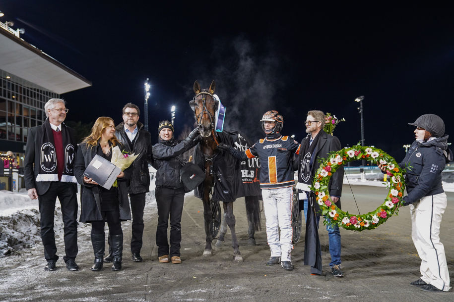 Skötaren Linnea Edler Pålsson tog förstås emot sin passhäst med pussar och kramar på stallbacken efter segerloppet. Det var hemmatränaren Henrik Svenssons stall som den här lördagen förde extra tur med sig. Linnea lämnade inte heller något åt slumpen, utan det handlade om exakt samma upplägg som vid STL-segern i Östersund i mitten av december.