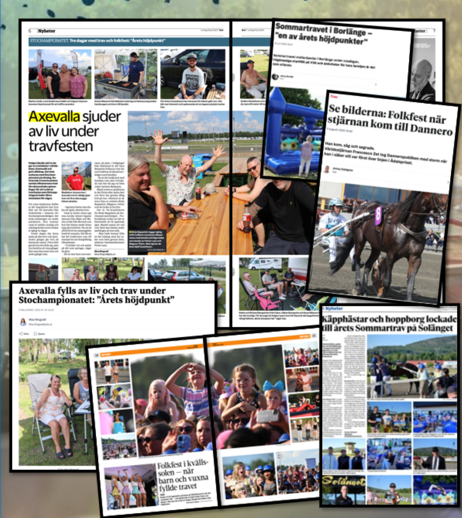 Genom sommaren var vi i kontakt med lokalmedia i nästan hela landet. Vi berättade om travet som folkfest och om allt som händer runt loppen: barnfamiljer, travskolor, publikaktiviteter och den där nyfikenheten som ofta uppstår när man får se travet på nära håll.